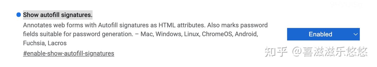 2、找到:Show autofill signatures,并将其设置为“Enabled”,如下